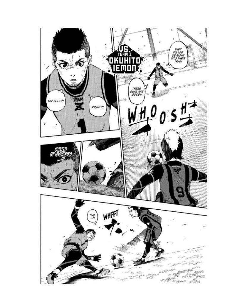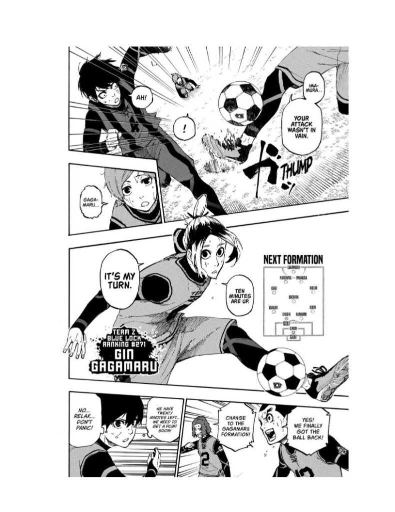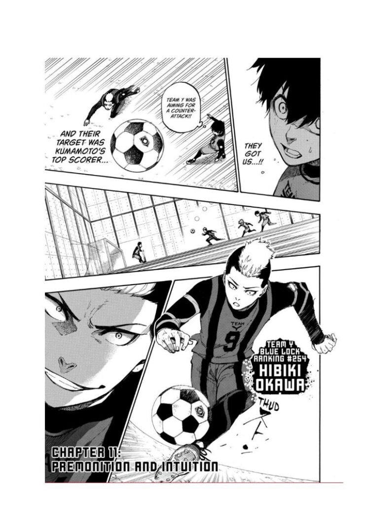 Chapter 11 marks the start of the First Selection inside the Blue Lock facility. The 300 players are divided into 25 teams of 12, each ranked based on their entry test performance. Yoichi Isagi finds himself on Team Z, the lowest-ranked group — a harsh reminder of where he stands among Japan’s most ambitious strikers.