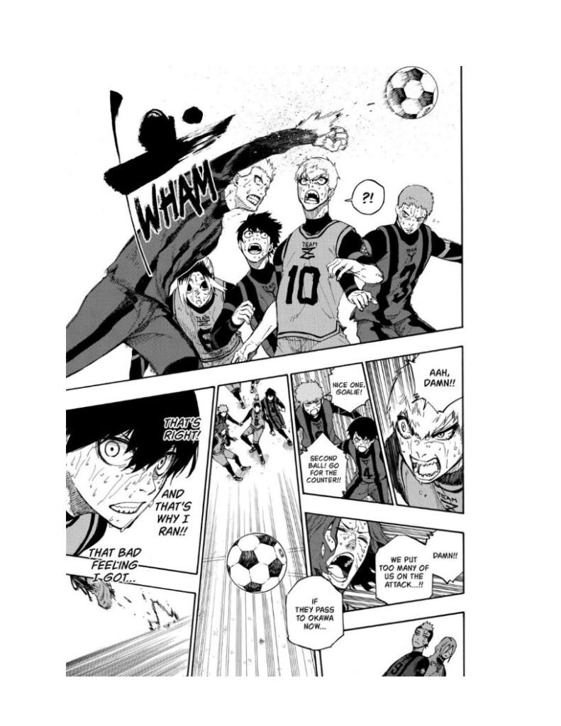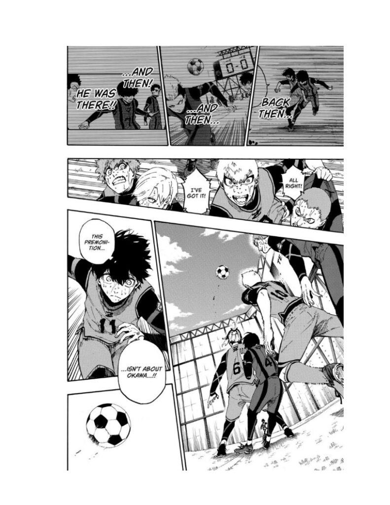 Isagi realizes that raw talent alone won’t win in Blue Lock — he needs to understand positioning, awareness, and the flow of the game.