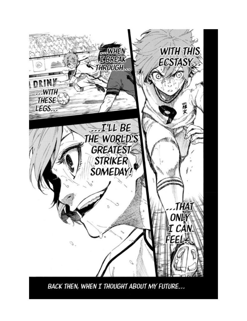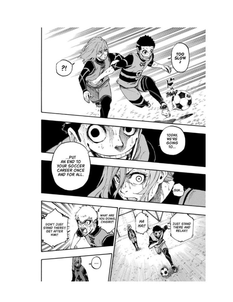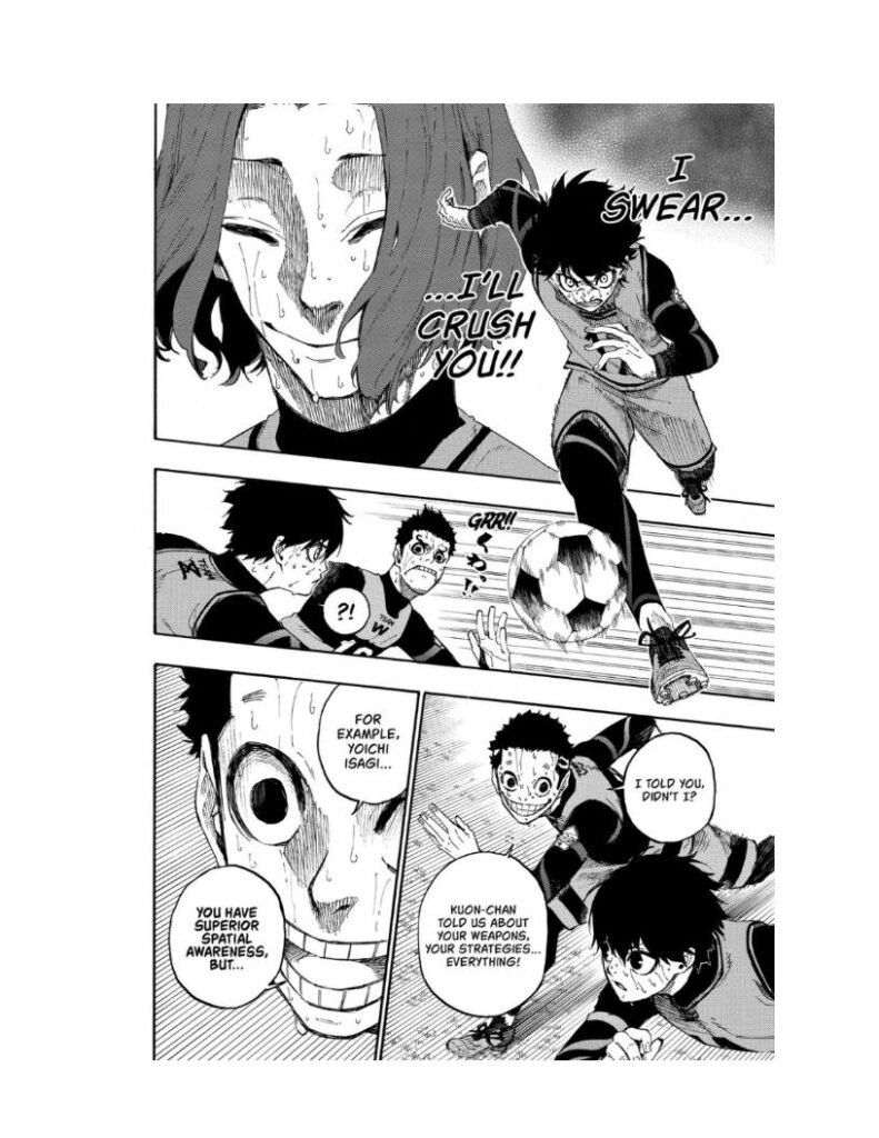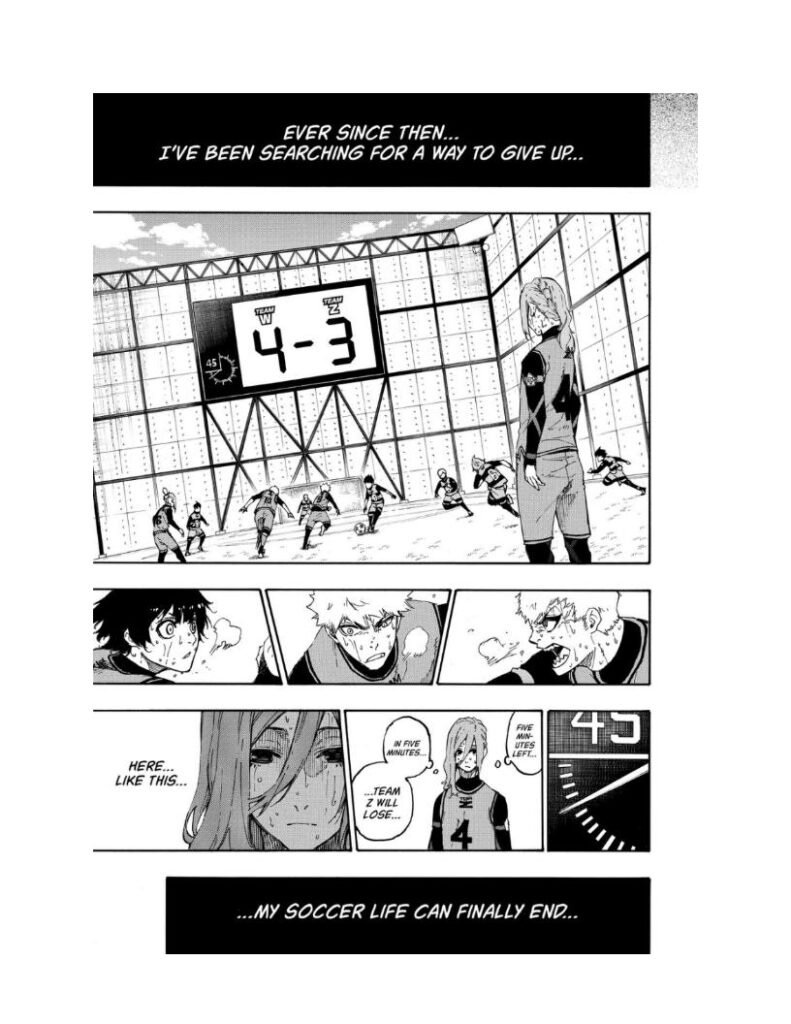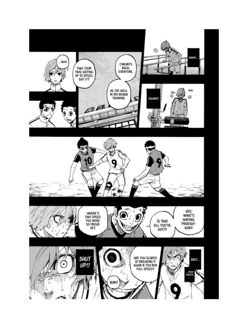 Focus shifts to Chigiri, the team’s quiet player with incredible speed. He reveals he once feared injury and held back from playing at full power. Motivated by Isagi’s passion, he decides to unleash his true potential.