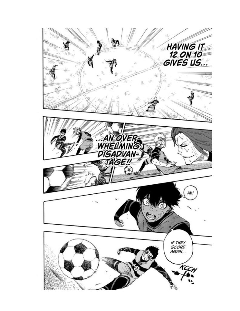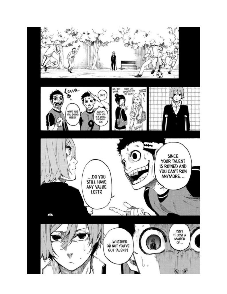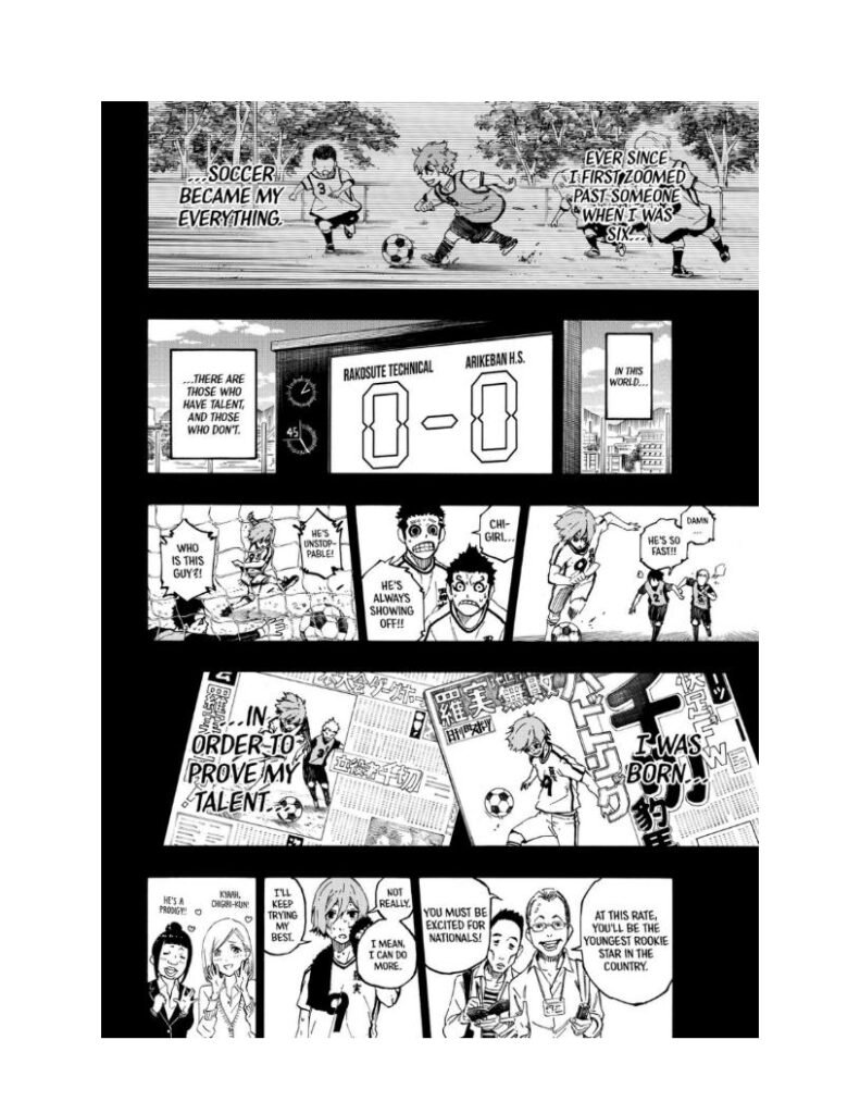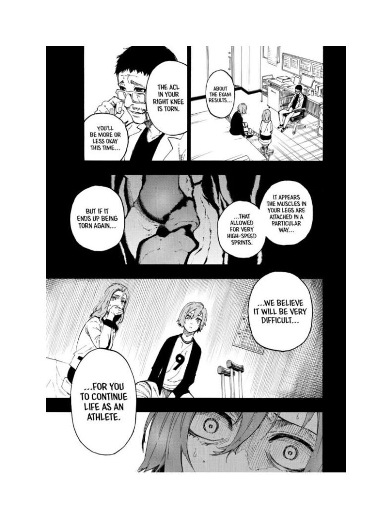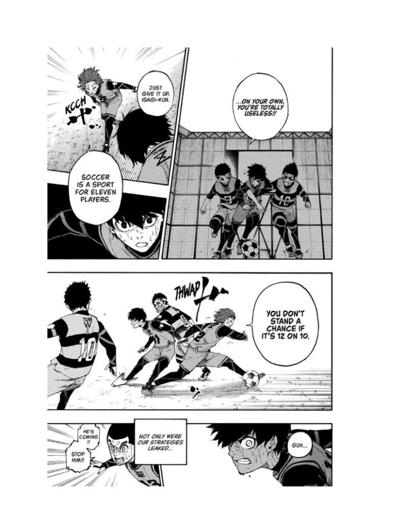 Focus shifts to Chigiri, the team’s quiet player with incredible speed. He reveals he once feared injury and held back from playing at full power. Motivated by Isagi’s passion, he decides to unleash his true potential.