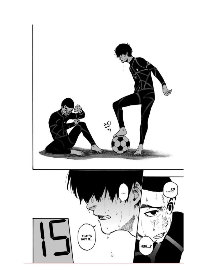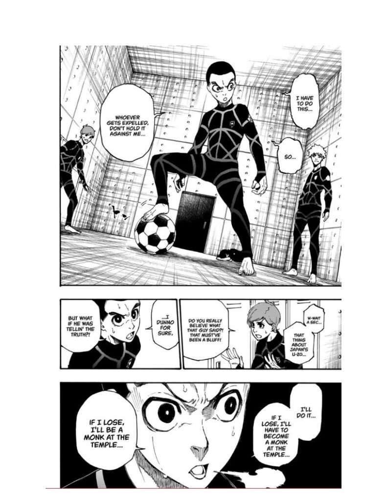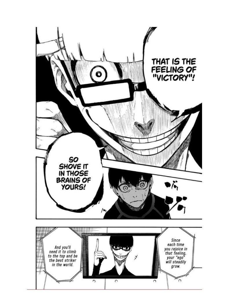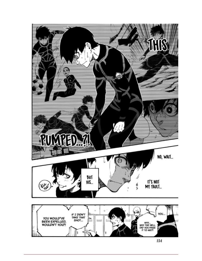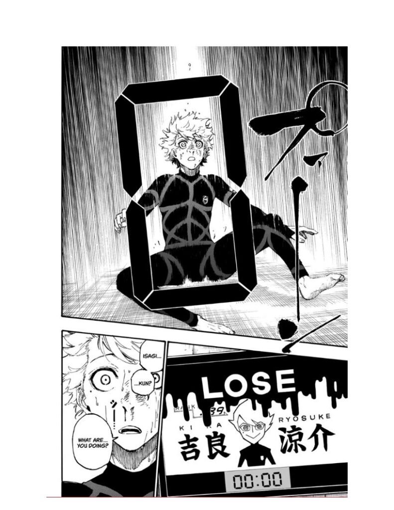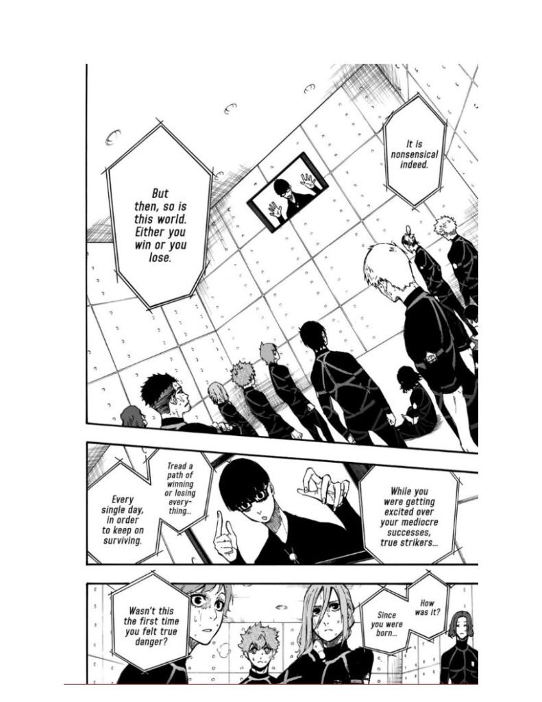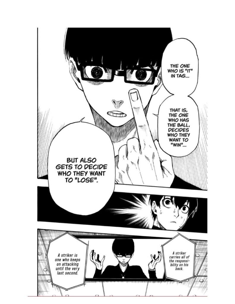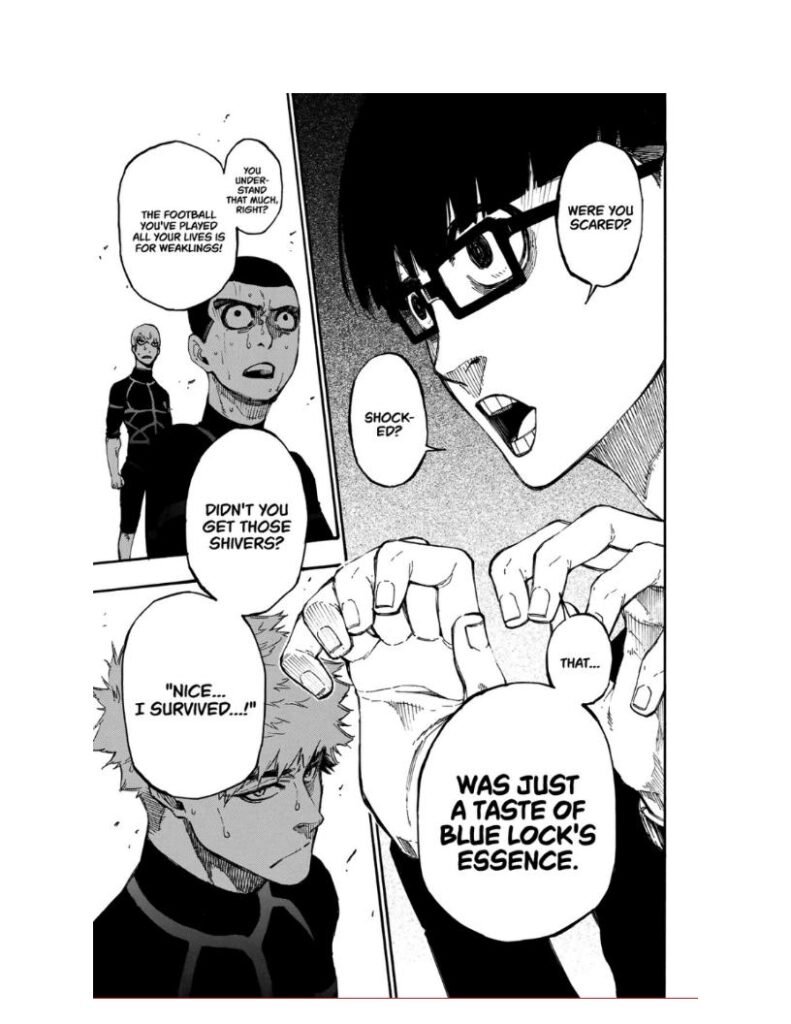 In this chapter, Coach Jinpachi Ego wastes no time proving his point. He throws all the players into a “tag-style” elimination game where the slowest, weakest, or most hesitant forward will be expelled from Blue Lock immediately.