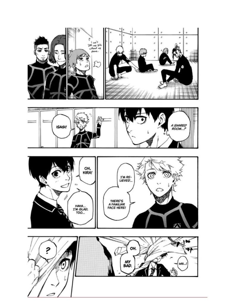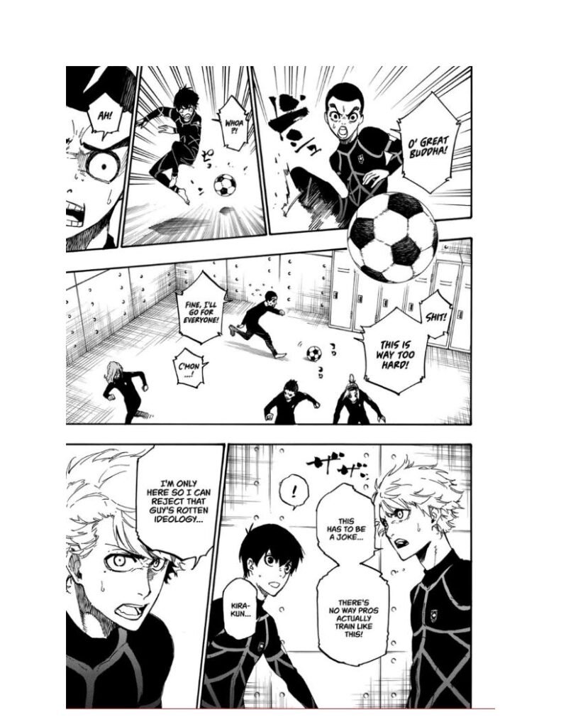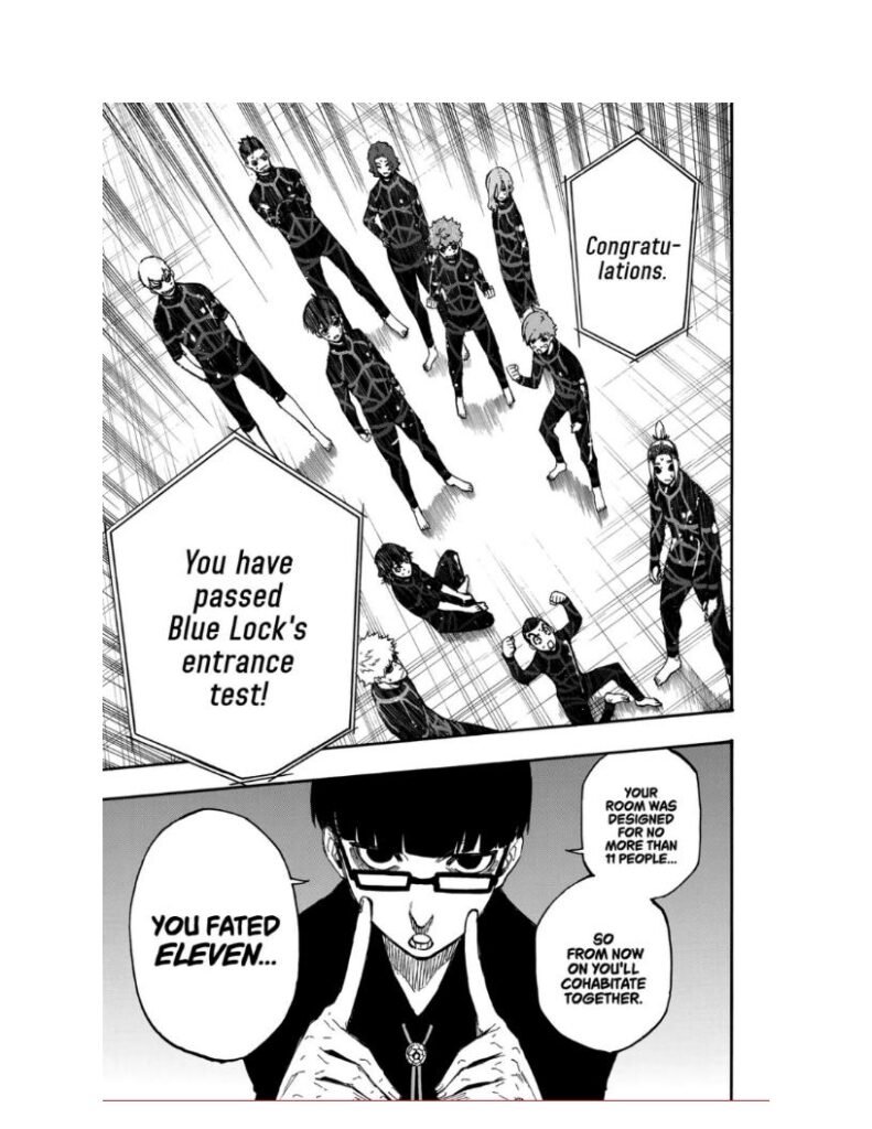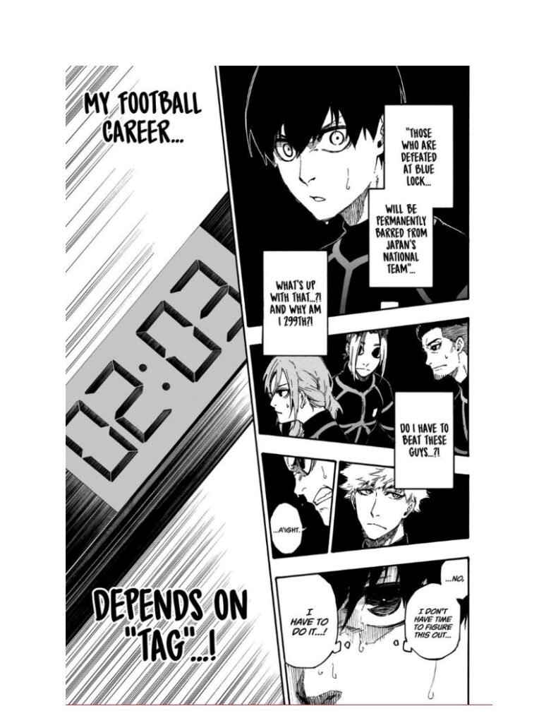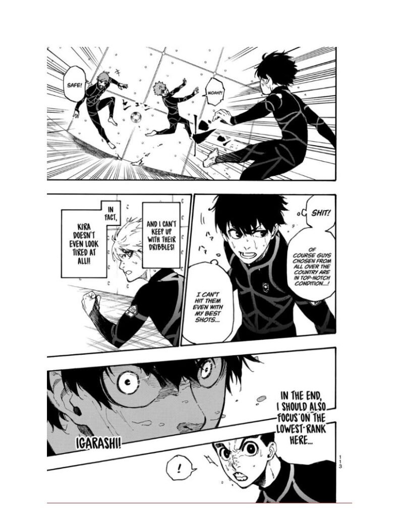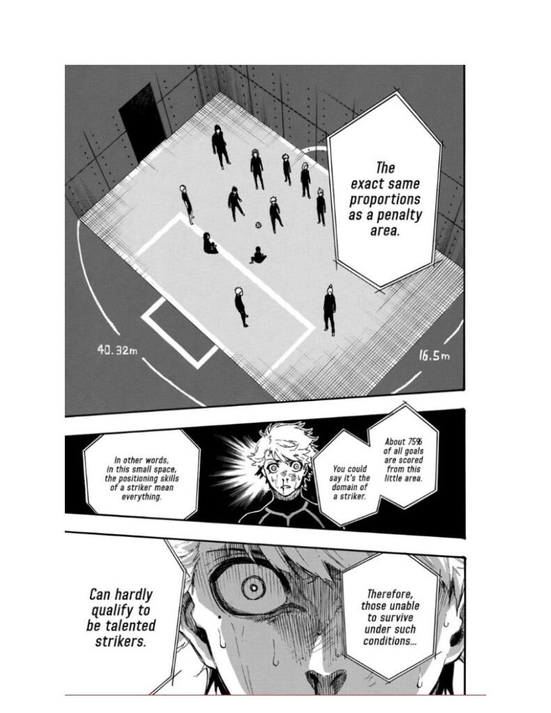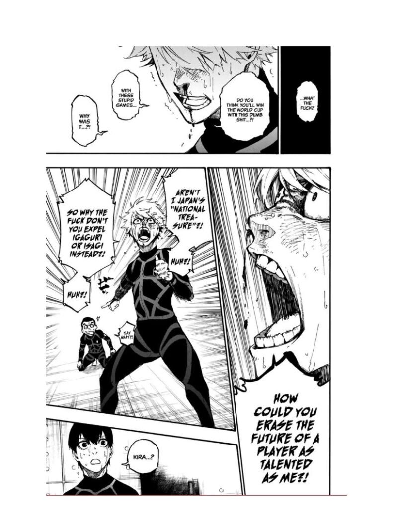 In this chapter, Coach Jinpachi Ego wastes no time proving his point. He throws all the players into a “tag-style” elimination game where the slowest, weakest, or most hesitant forward will be expelled from Blue Lock immediately.