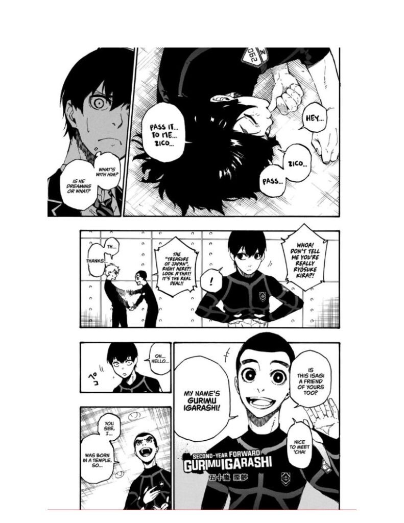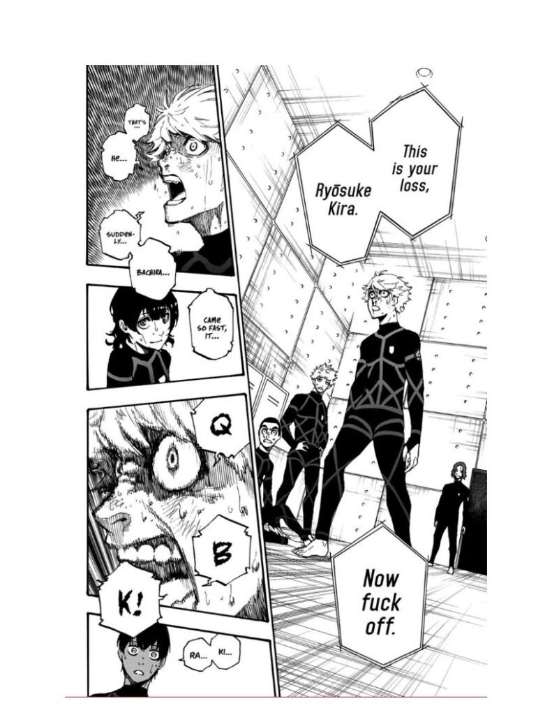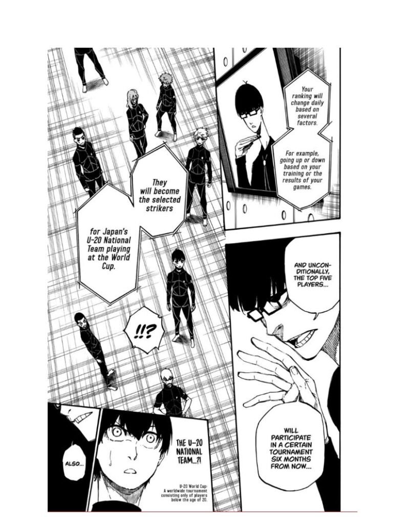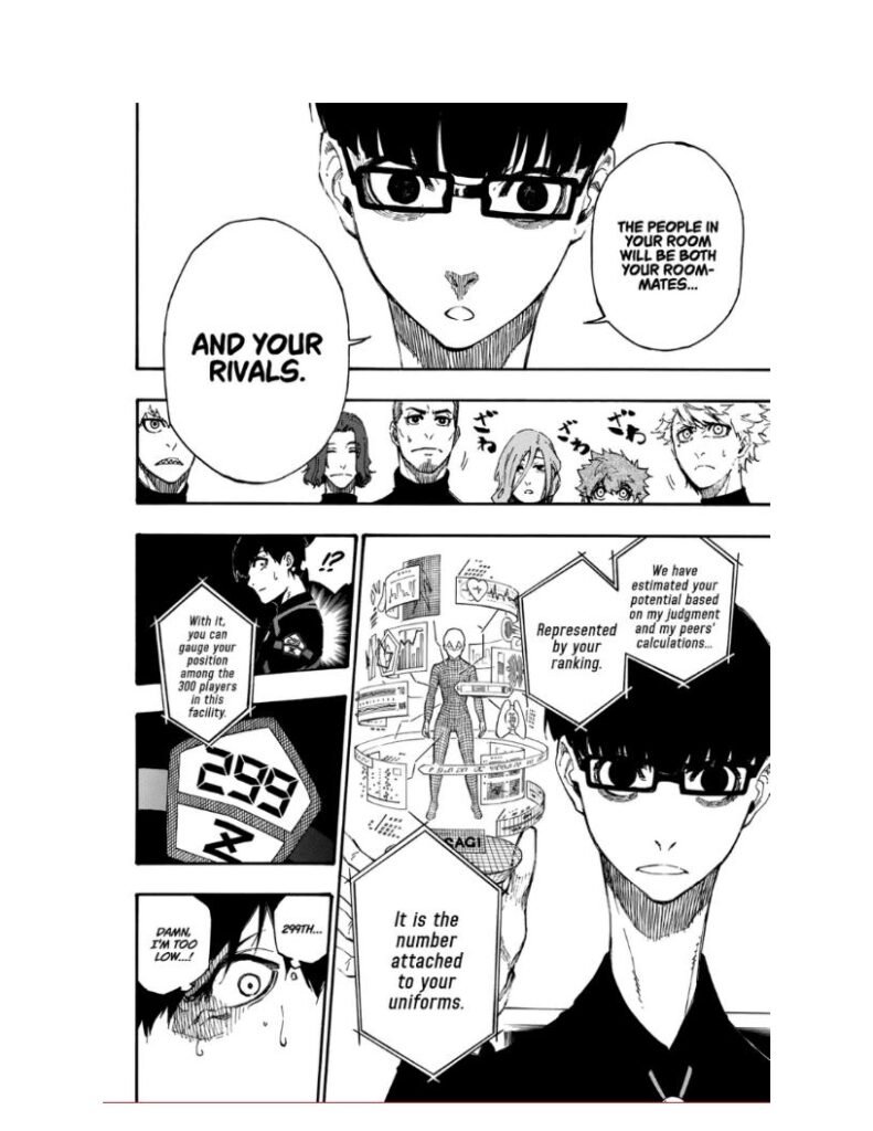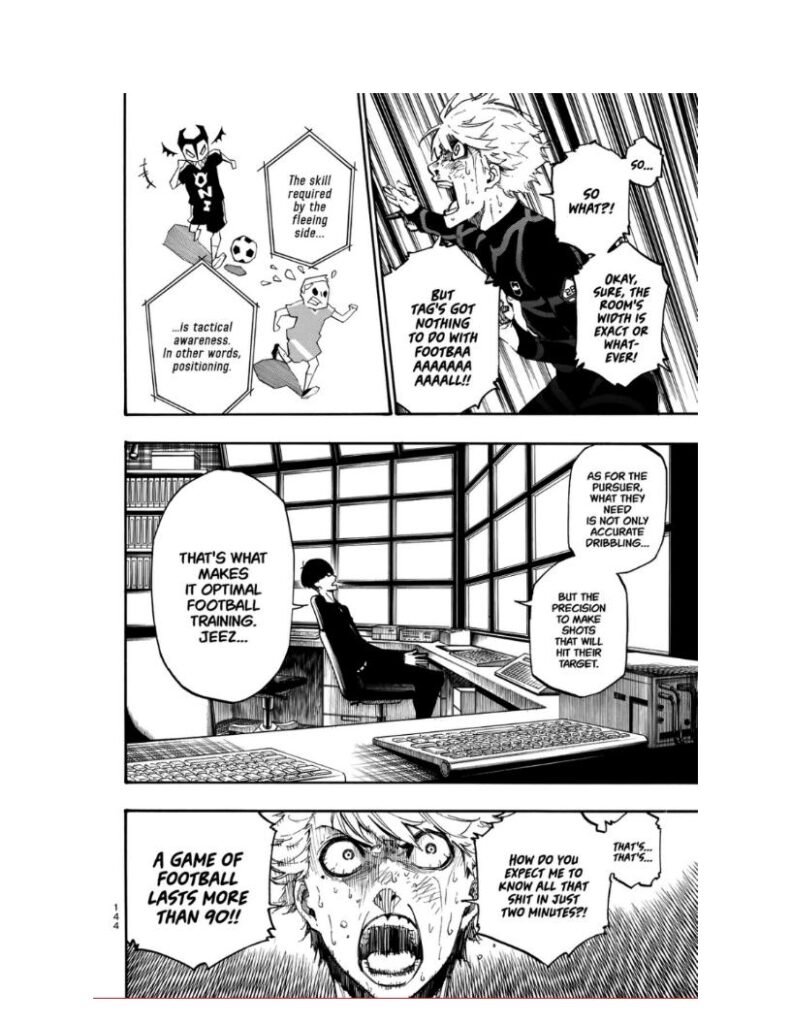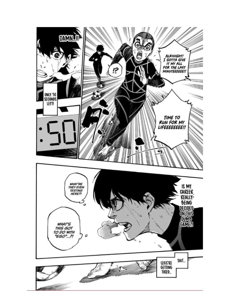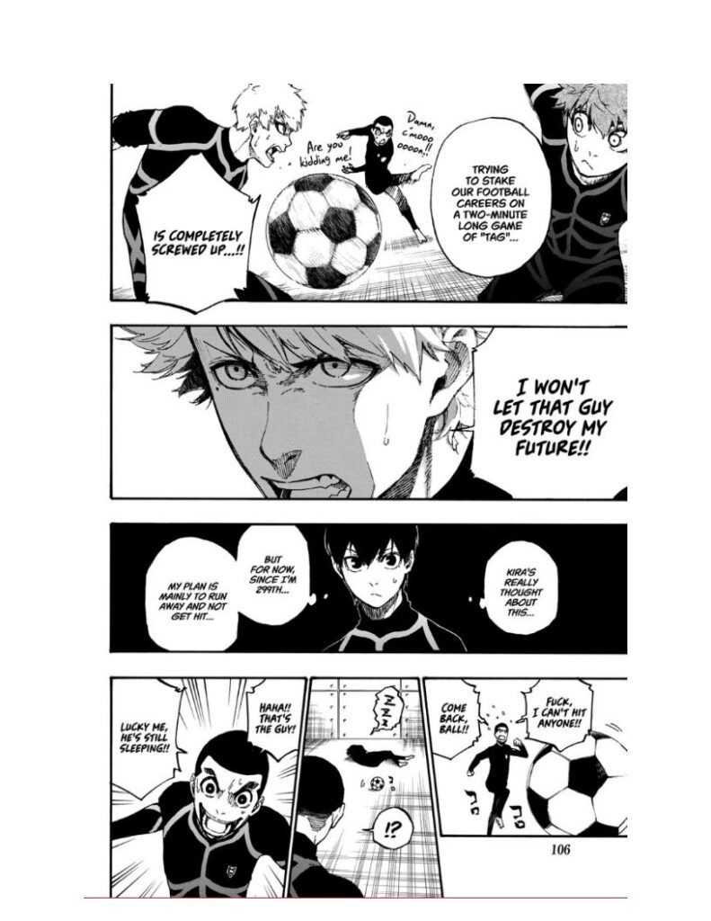 In this chapter, Coach Jinpachi Ego wastes no time proving his point. He throws all the players into a “tag-style” elimination game where the slowest, weakest, or most hesitant forward will be expelled from Blue Lock immediately.