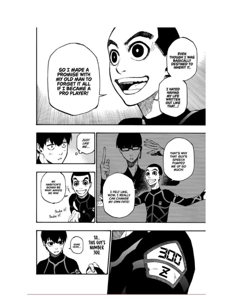 | Yoichi Isagi | Begins to confront his fear and self-doubt. |