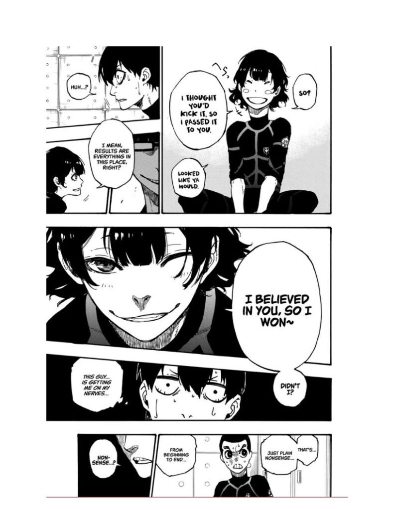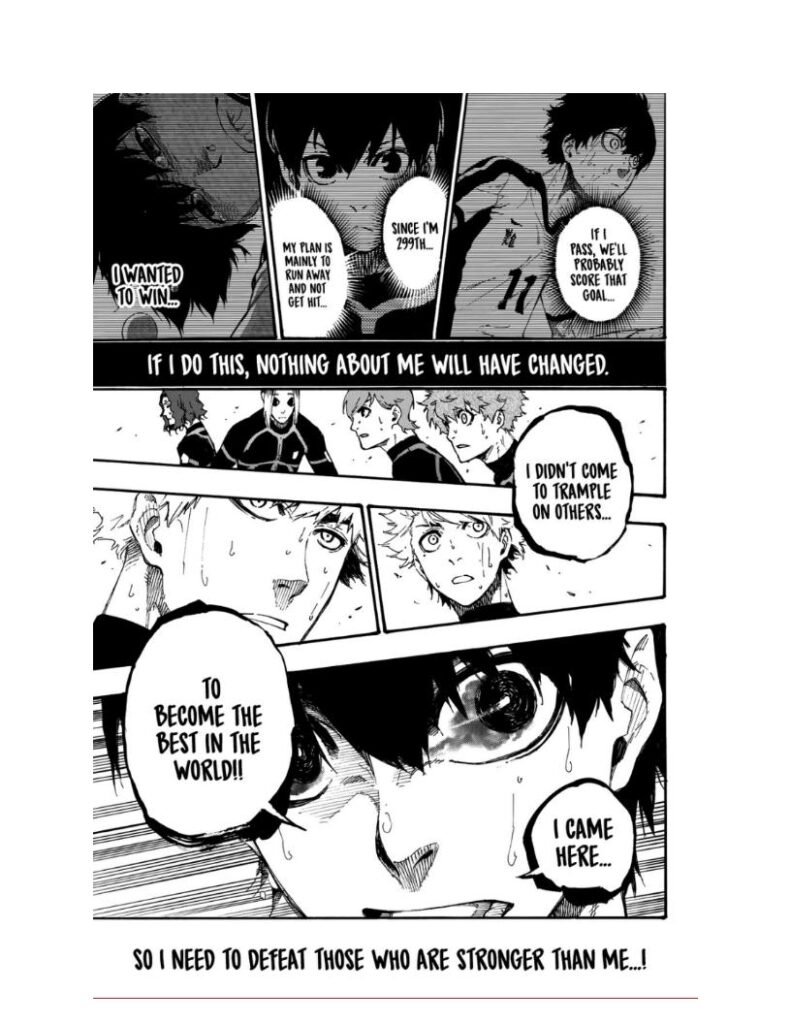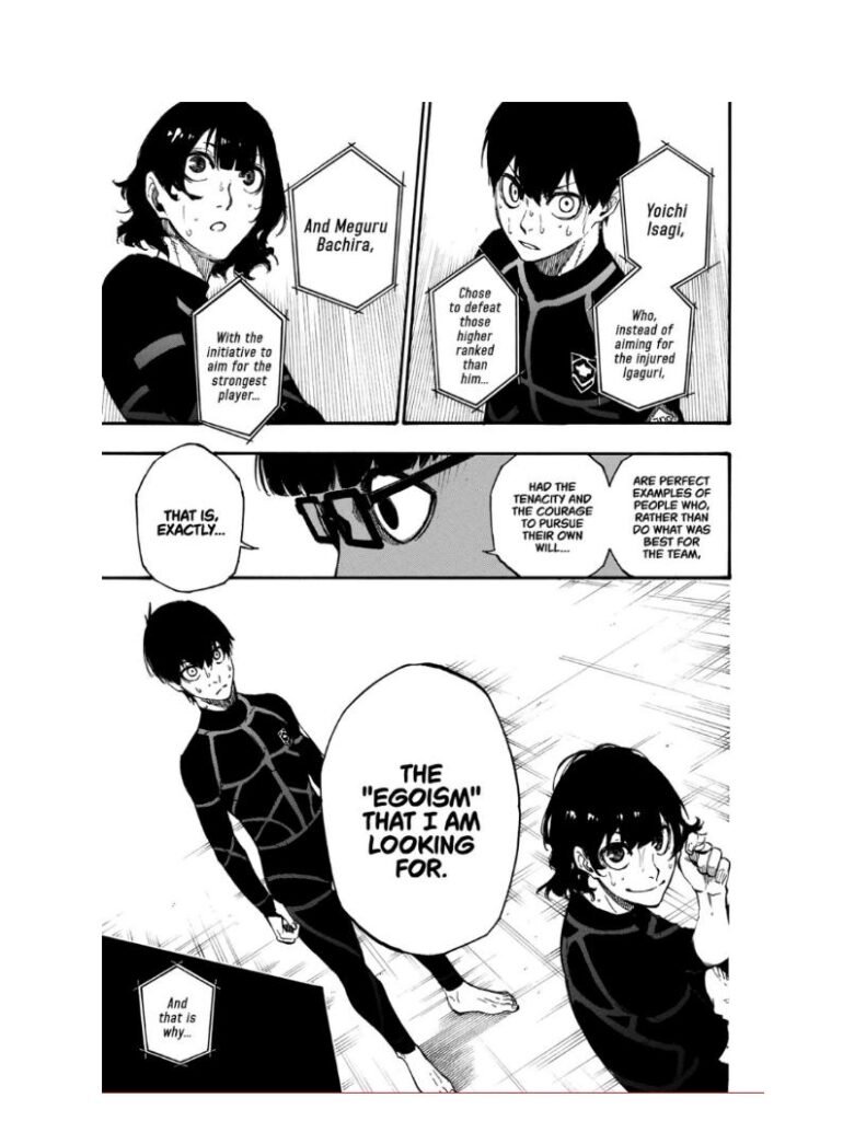 By the end of the game, Isagi realizes that Blue Lock isn’t just about soccer — it’s about erasing weakness and embracing the selfish, hungry side of being a striker.