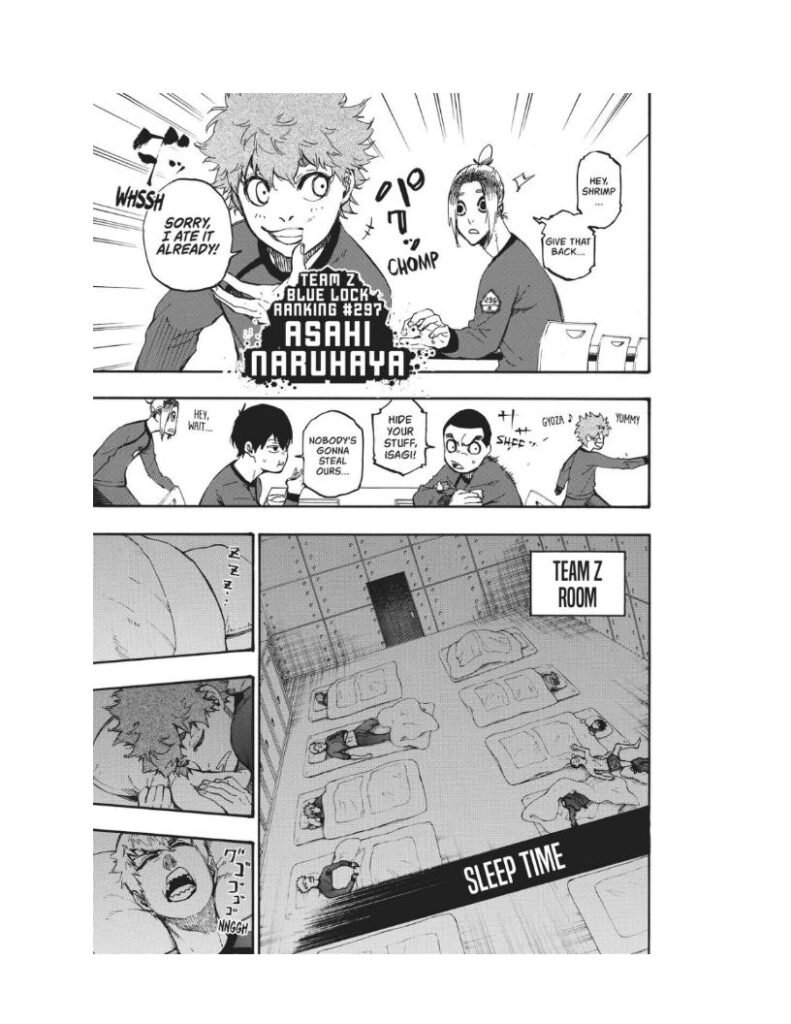 After the chaos of the first elimination match, the remaining players are divided into smaller teams. Yoichi Isagi is placed in Team Z, a group of 11 forwards who must now live, train, and fight together. But unlike a normal soccer team, every player in Blue Lock is a striker — meaning everyone wants the spotlight.