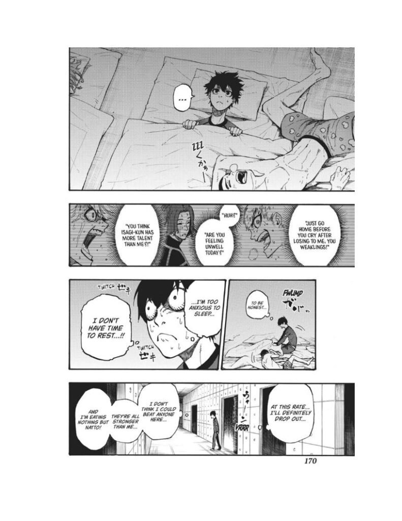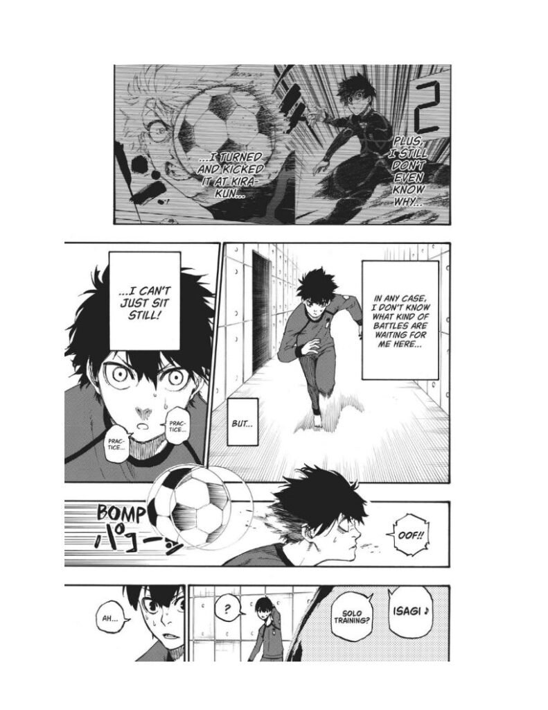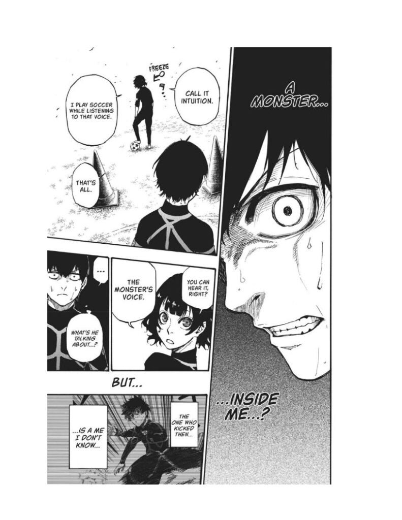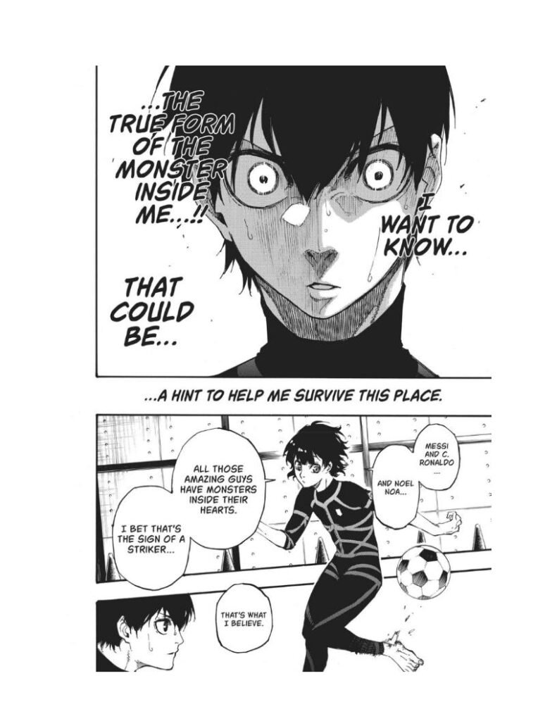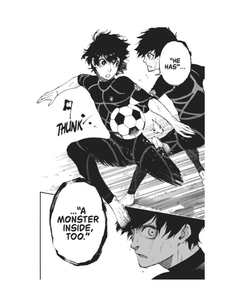 Isagi struggles to find his place among these confident and arrogant forwards. He’s still questioning whether he has what it takes to stand out. But deep down, something starts to awaken — a quiet fire, a growing ego, and the faint echo of the “monster” Bachira spoke about.
