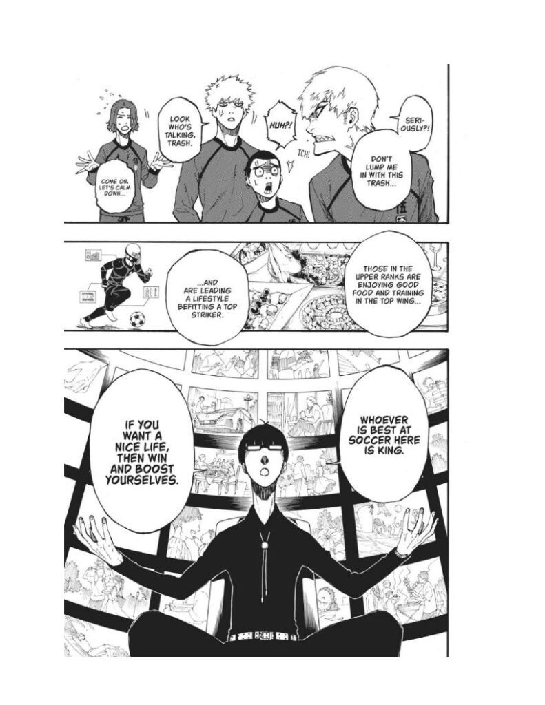As the chapter progresses, tension builds among the players. No one trusts anyone else. They all share the same dream — to become Japan’s number one striker — but to do so, they’ll need to crush their teammates.