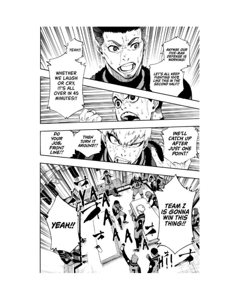 Everything builds to the final play. Time is almost up. Team Z has one last chance. Isagi analyzes every move on the field — Nagi’s positioning, Reo’s defense, Chigiri’s speed — and finds the ultimate opportunity.