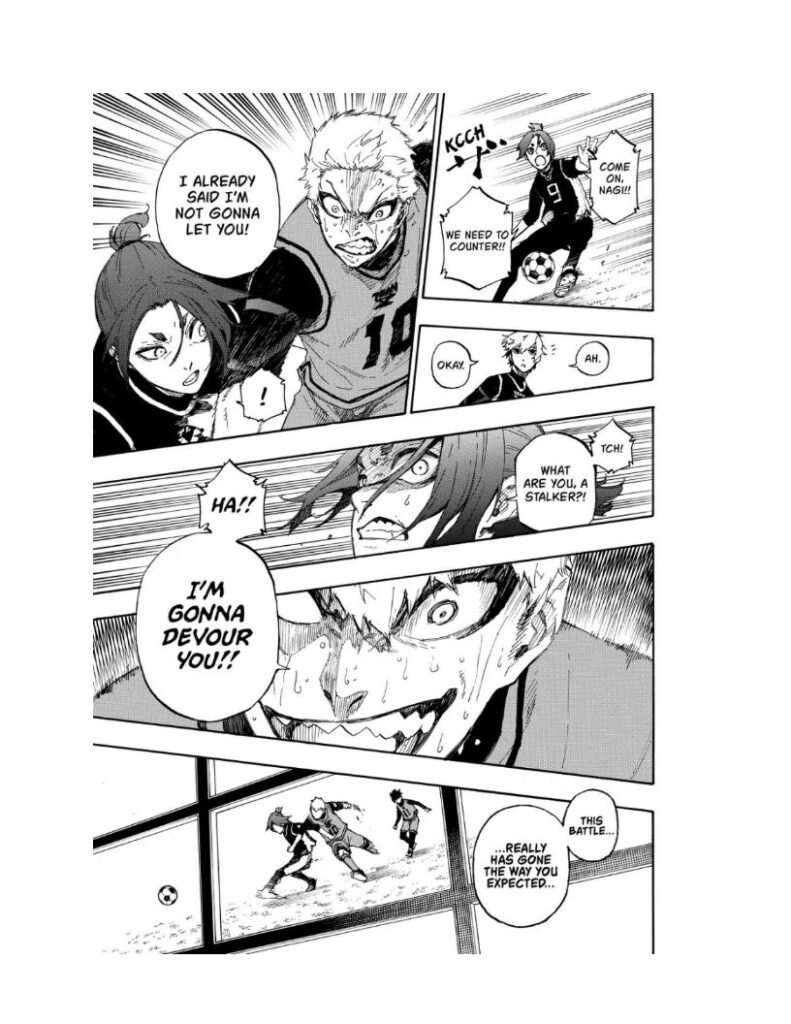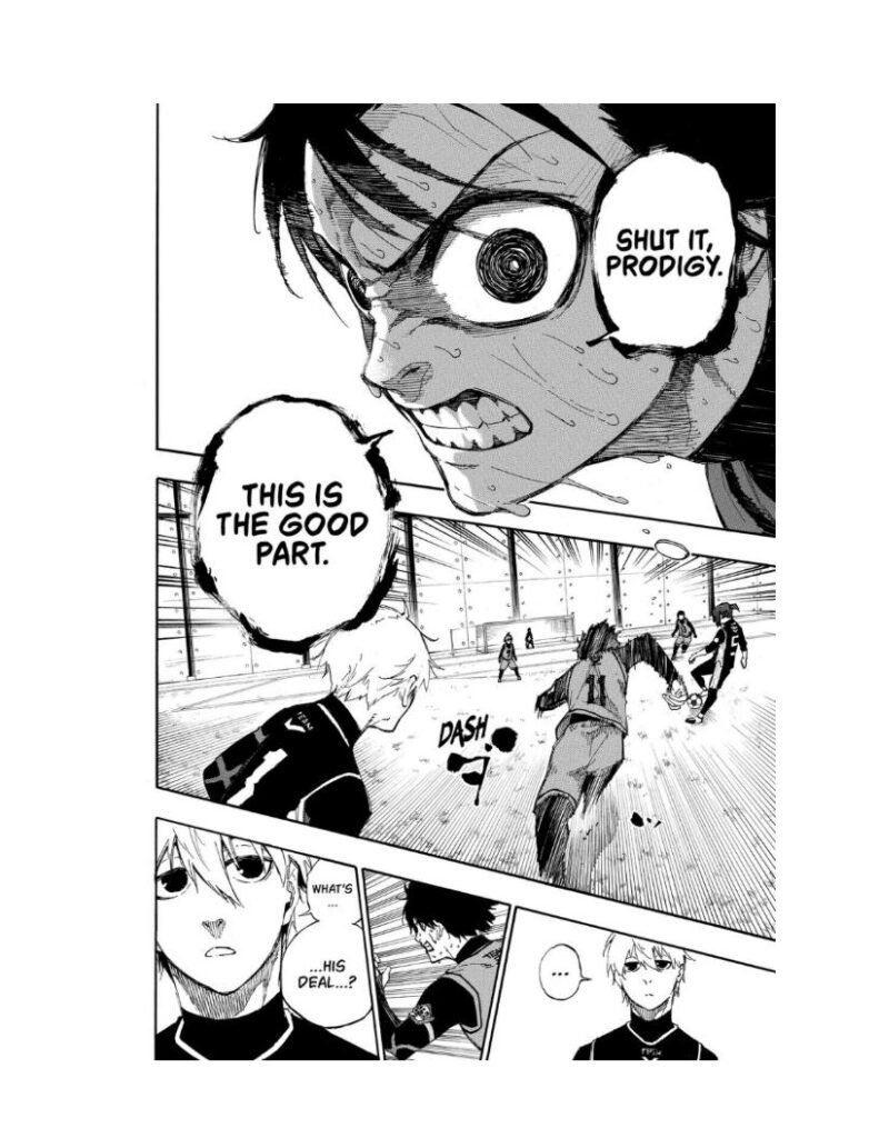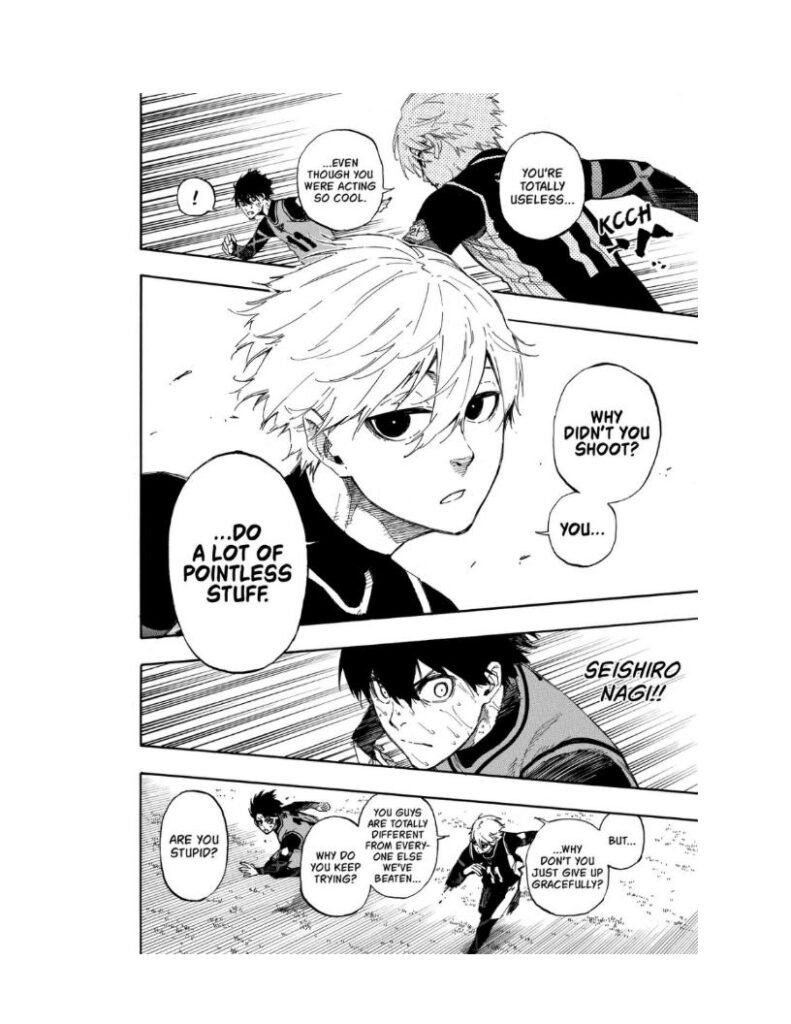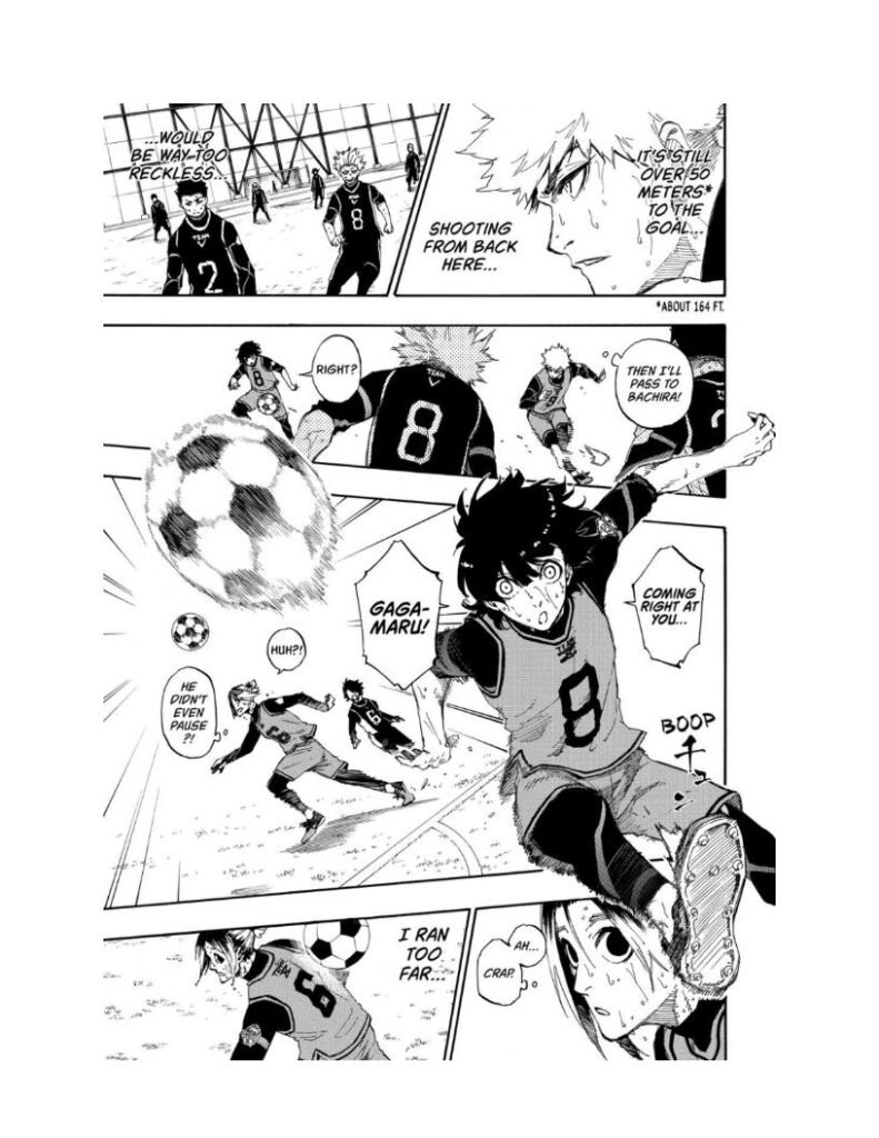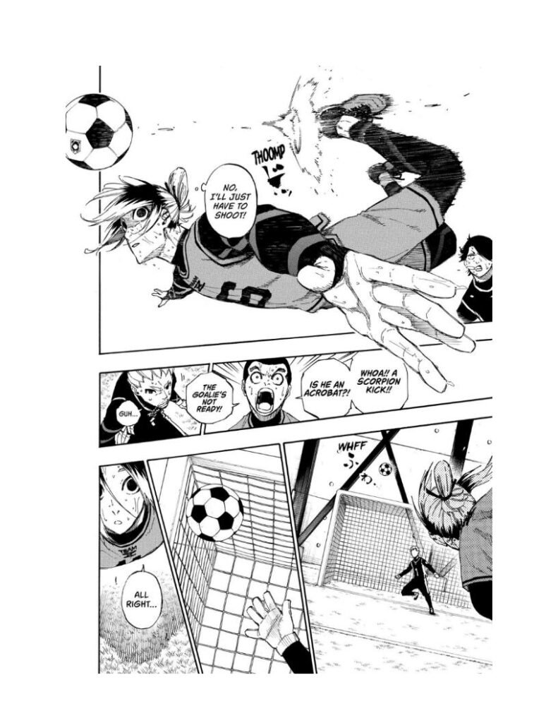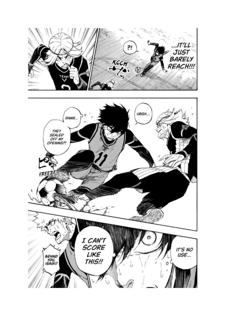 He yells for the ball. Bachira passes. Isagi positions himself perfectly, reading Nagi’s next move, and shoots.