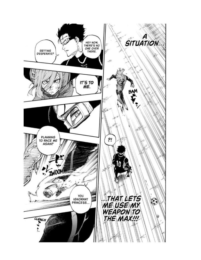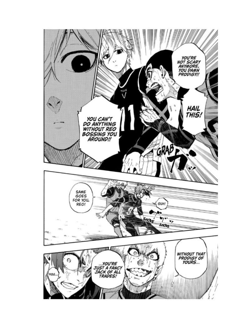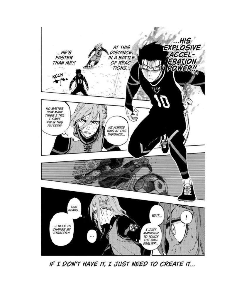 The chapter ends with Isagi and Bachira sharing a determined smile, ready to evolve further.