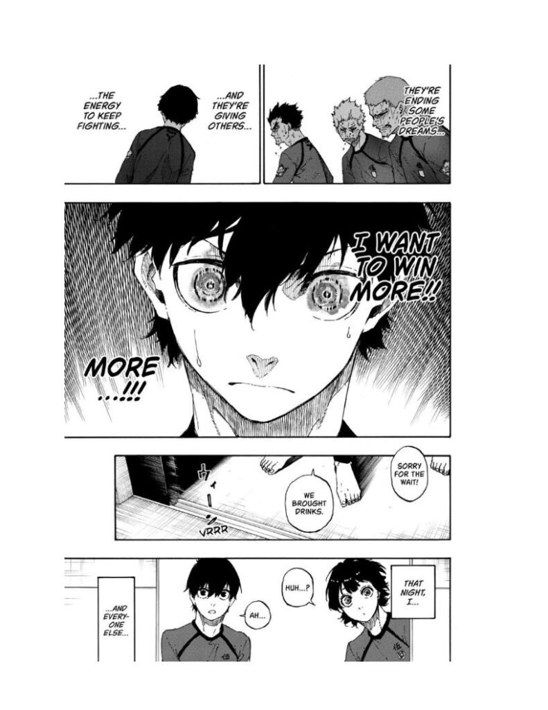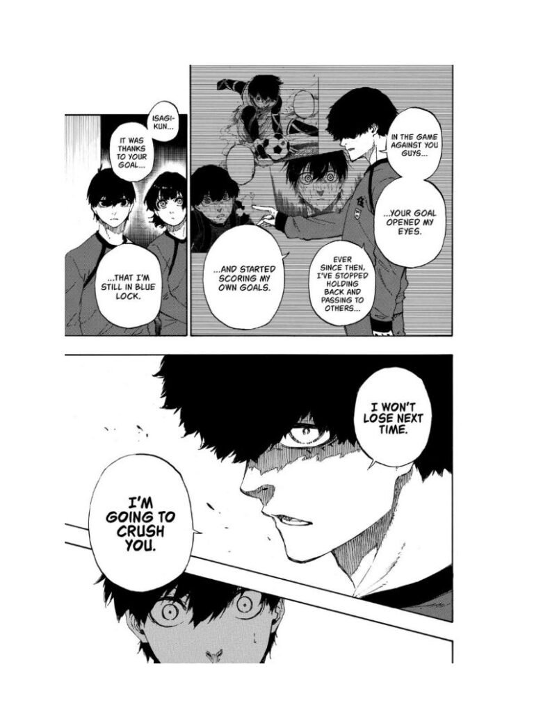 Down 2–1, Isagi refuses to fall back into doubt. He starts analyzing every tiny detail: