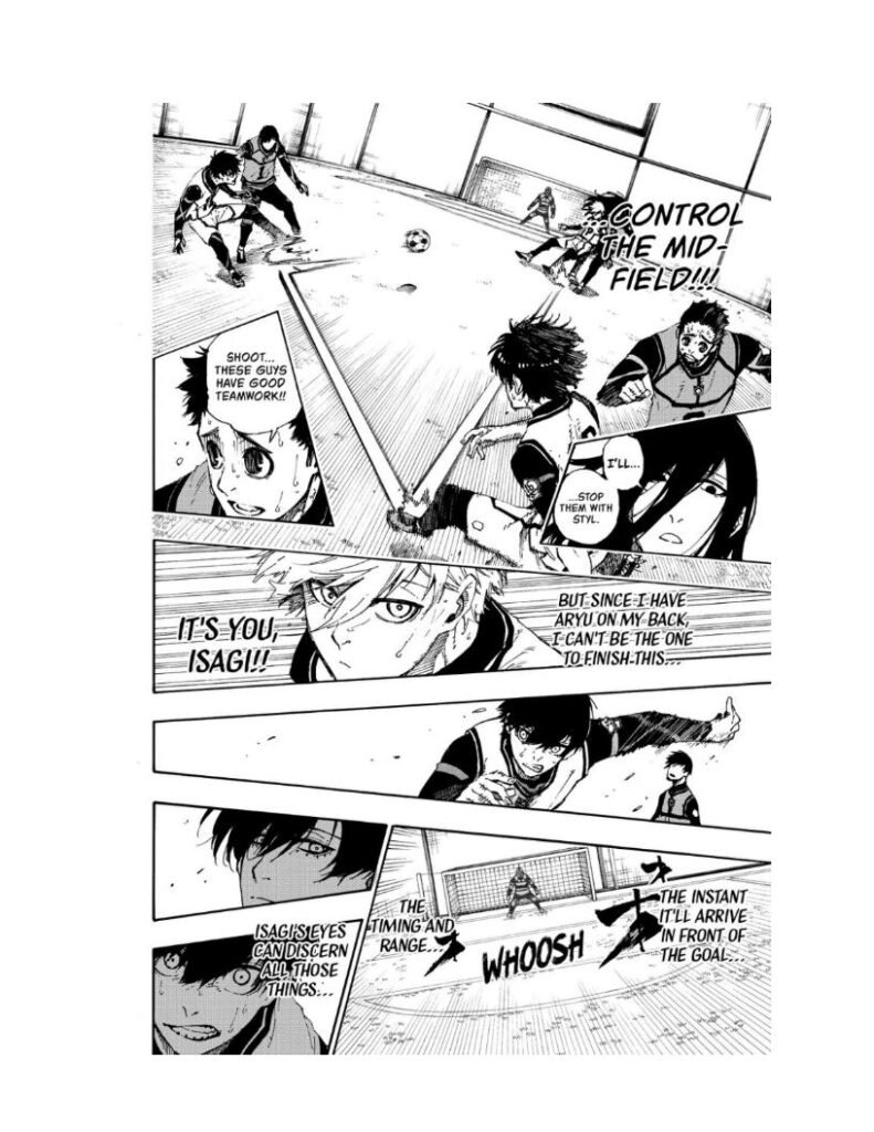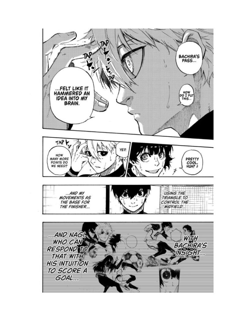 Isagi becomes obsessed with the idea of “flow,” the rhythm that controls a match. He starts analyzing every detail: