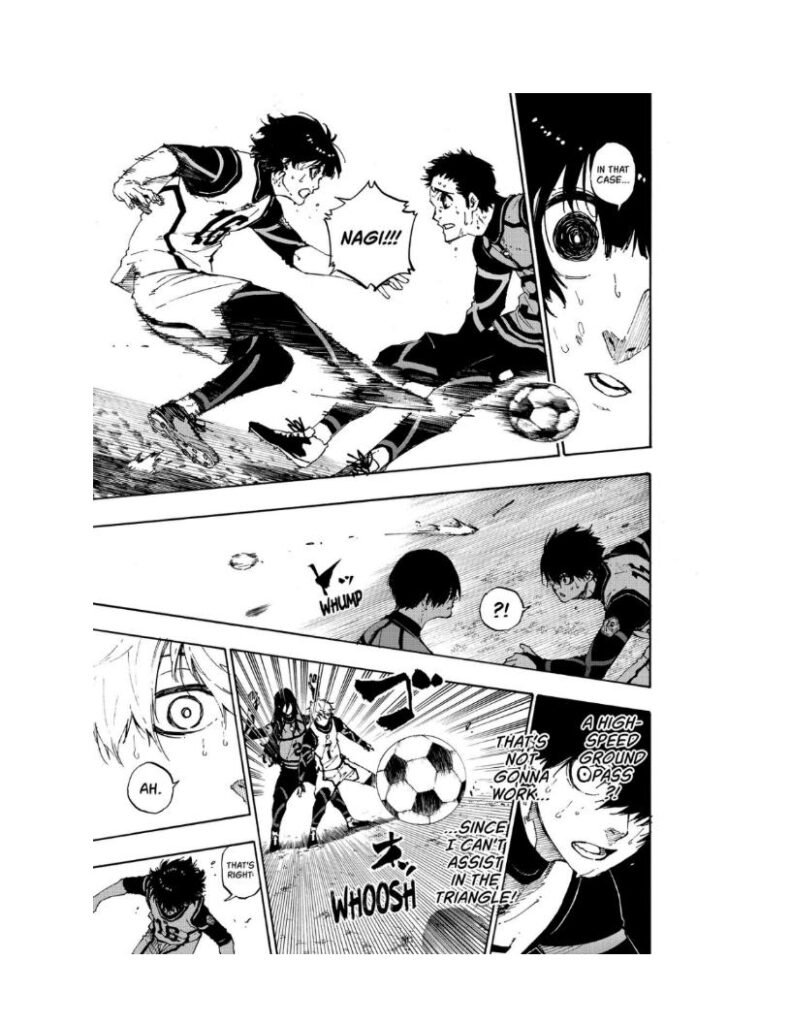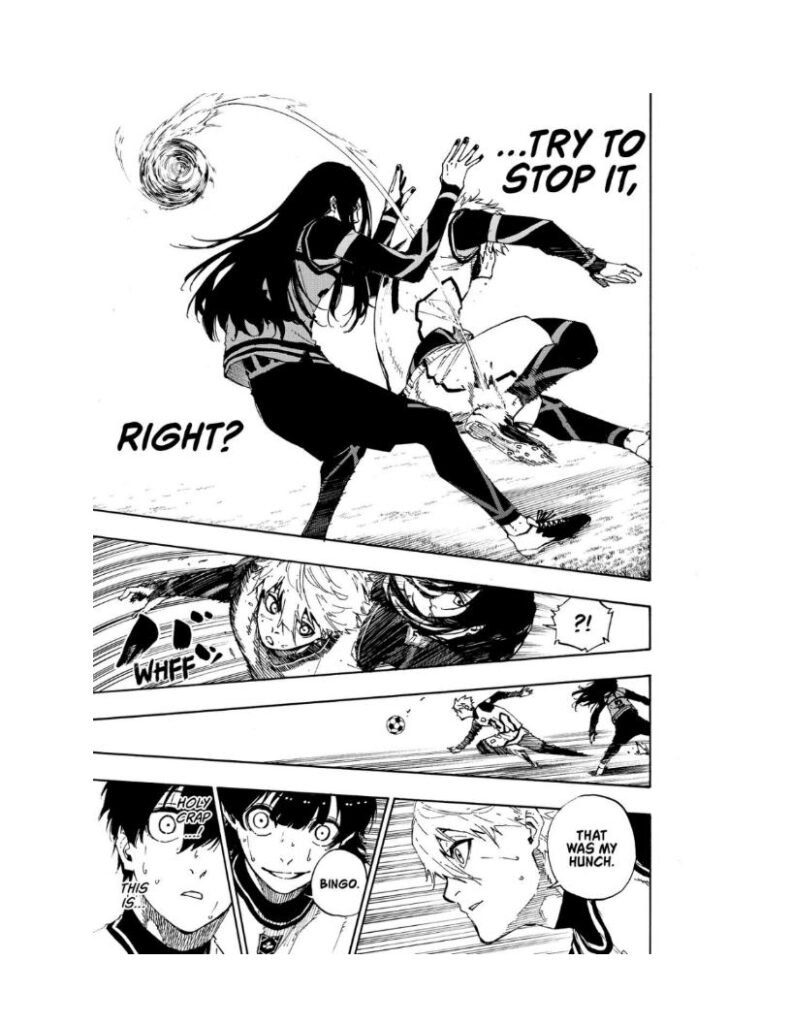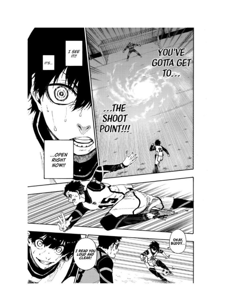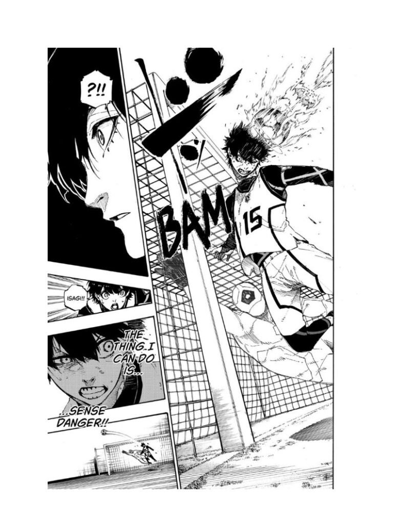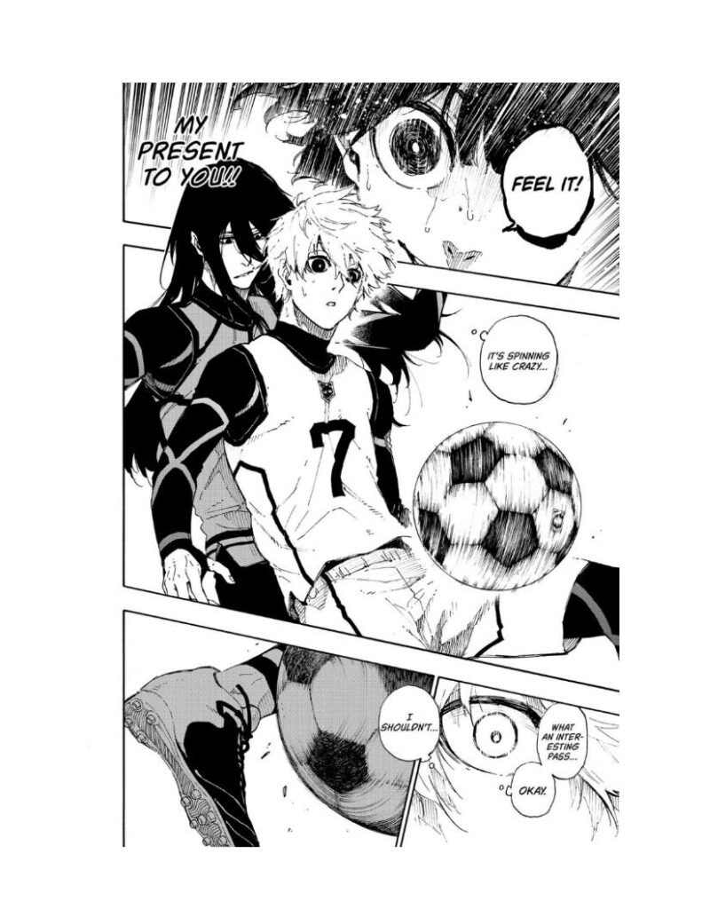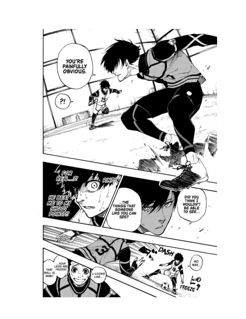 Isagi takes advantage of Rin’s 0.2-second hesitation and launches a counterattack.