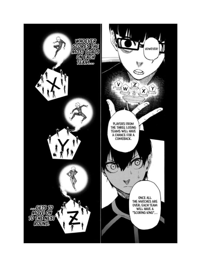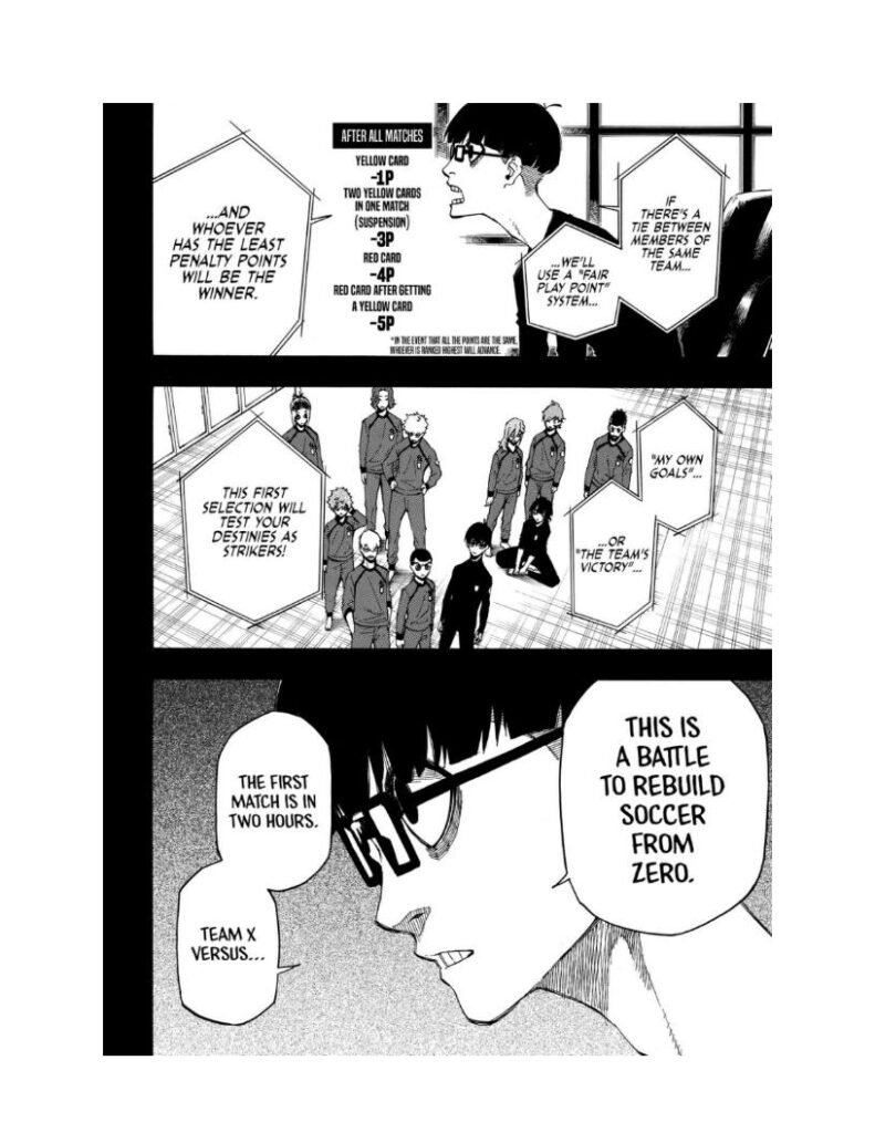Blue Lock Chapter 5 kicks off the first real battle inside Blue Lock — Team Z vs Team X. This is where the survival game becomes a full-scale psychological war on the field.