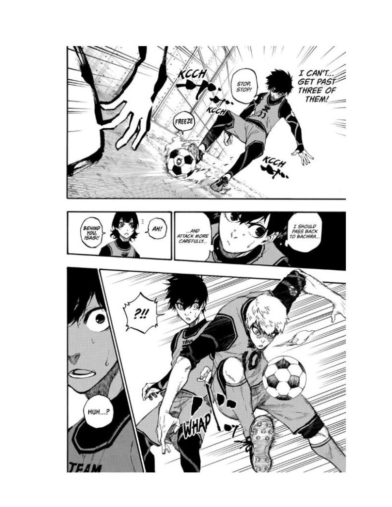 Isagi watches helplessly as his team collapses. For the first time, he experiences the crushing reality of facing a true egoist — someone who plays purely for himself and succeeds because of it.
