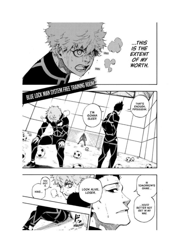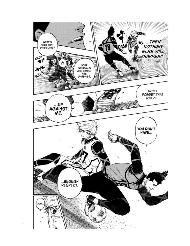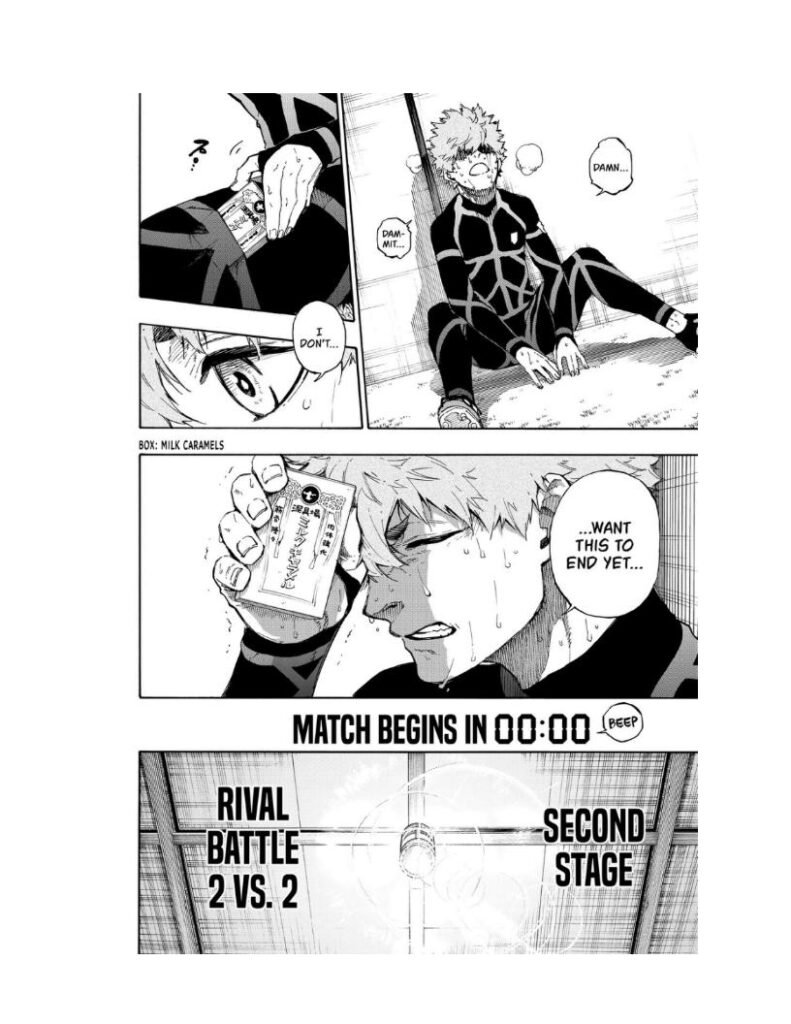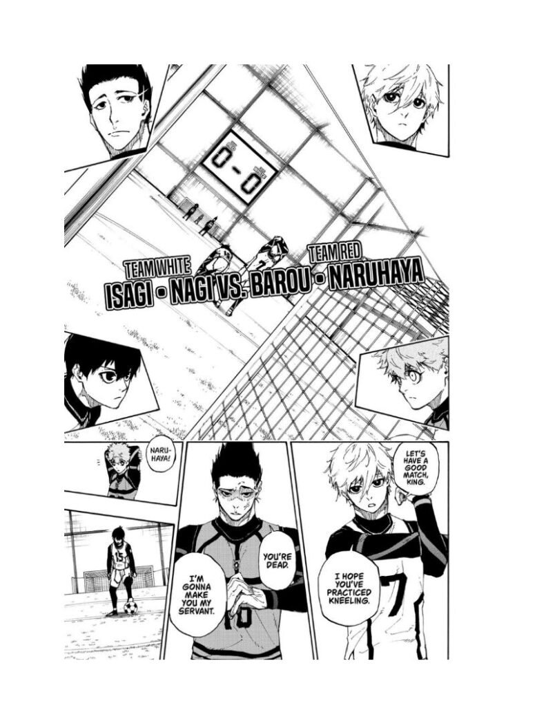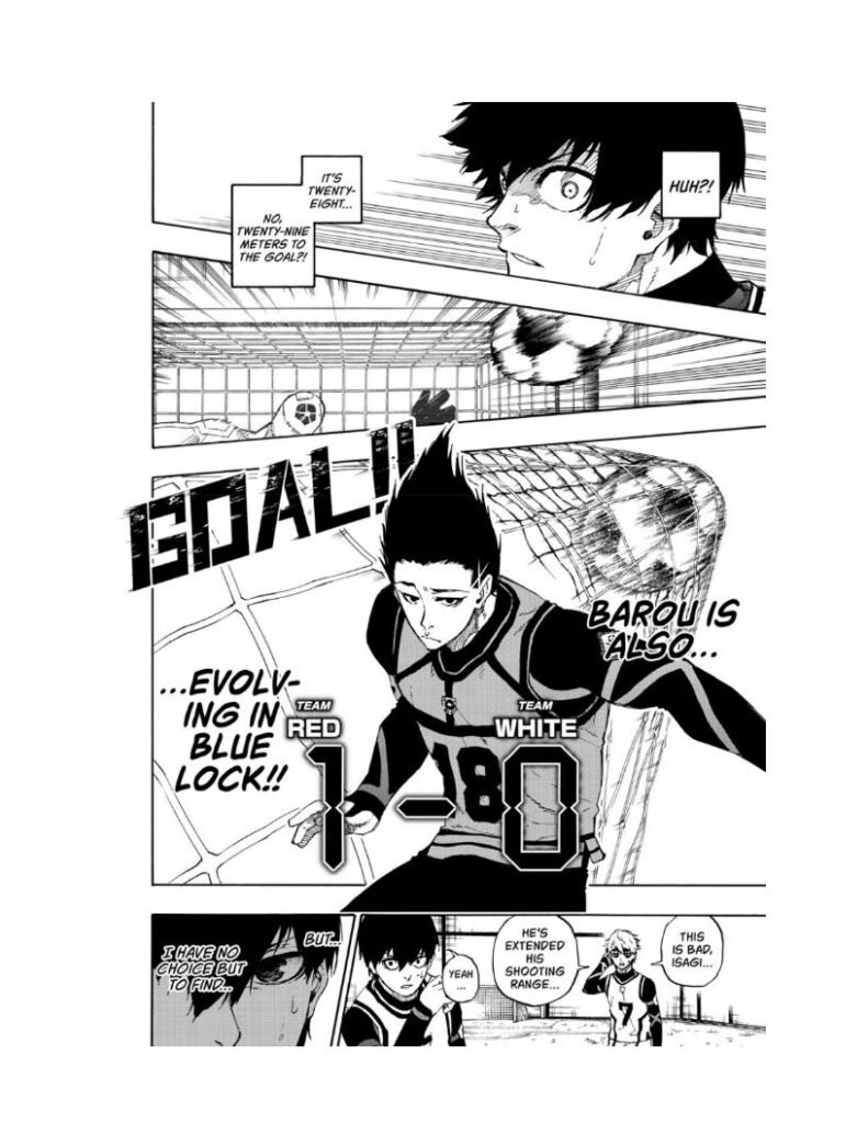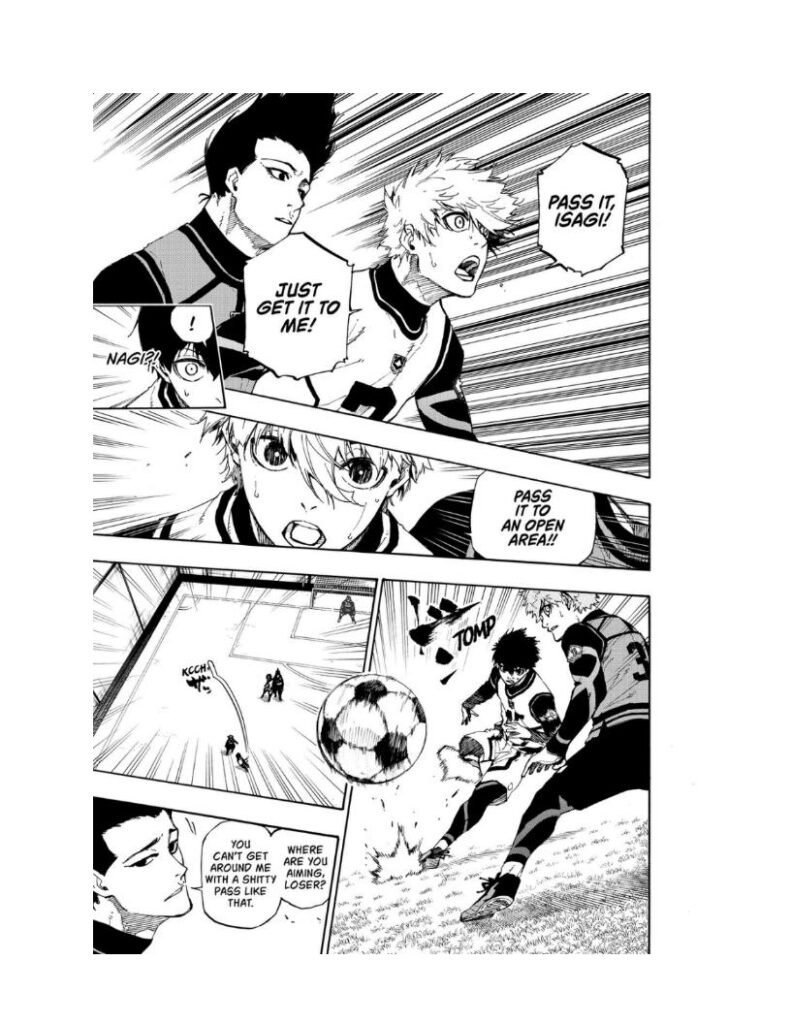 Nagi and Bachira push to support Isagi, but Rin overwhelms them with anticipation. Barou becomes frustrated, attempting to break through alone, but Aryu shuts him down with effortless defense.
