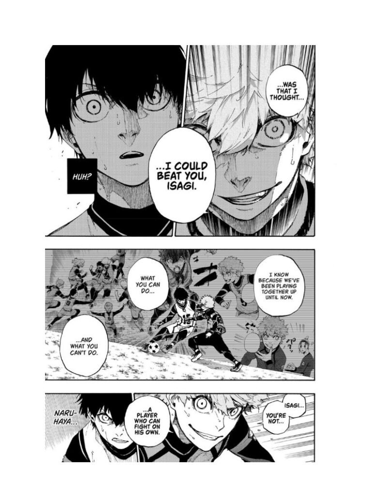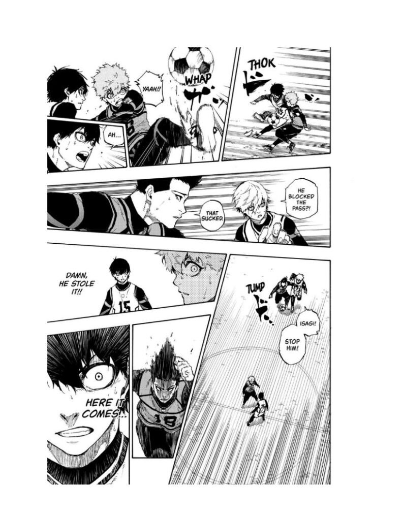 But instead of breaking, Isagi begins analyzing Rin’s micro-movements, trying to understand how Rin predicts the future.