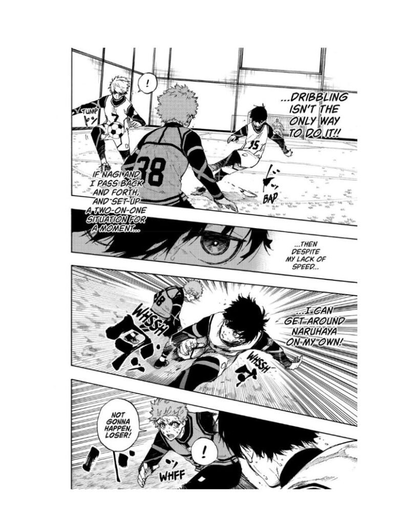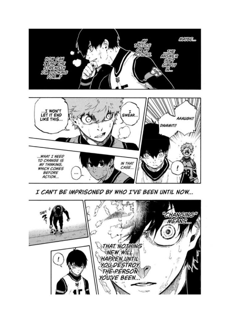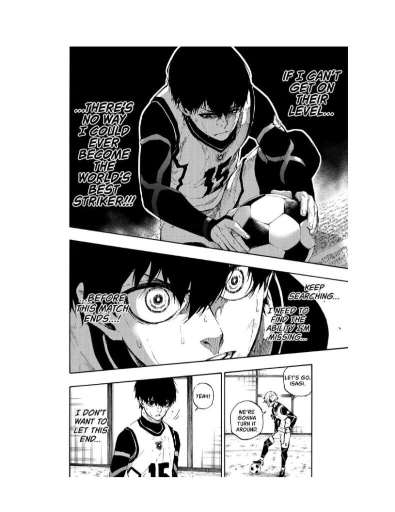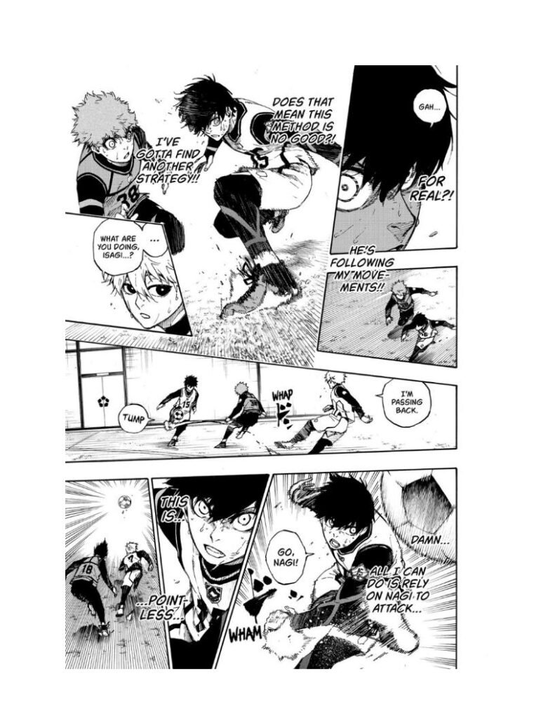 Until now, Nagi relied on his natural genius — incredible first touch, ridiculous trap ability, and intuitive instinct. But seeing Isagi claw his way upward ignites frustration inside him.