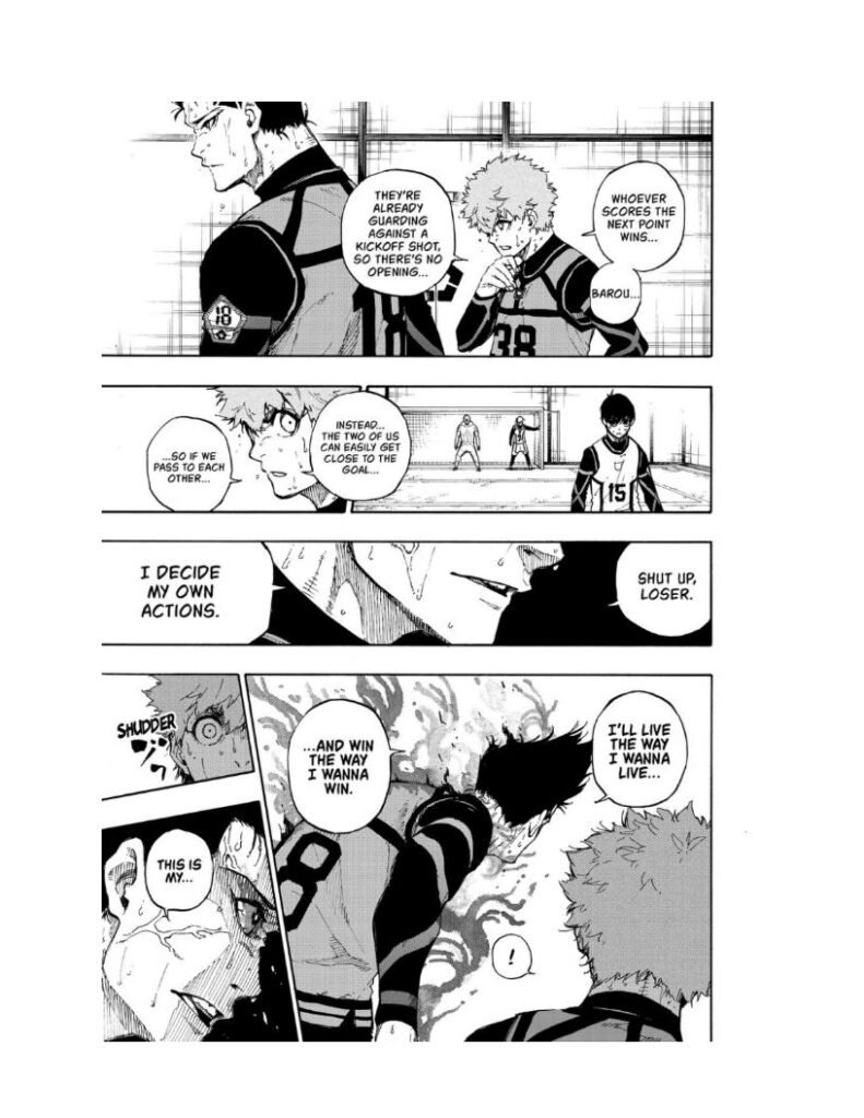 This chapter reframes soccer as an engine of cause-and-effect rather than isolated moments of talent. Isagi’s ability to see those links — to act like the trigger in a line of dominoes — marks a huge step in his evolution from reactive player to proactive strategist.