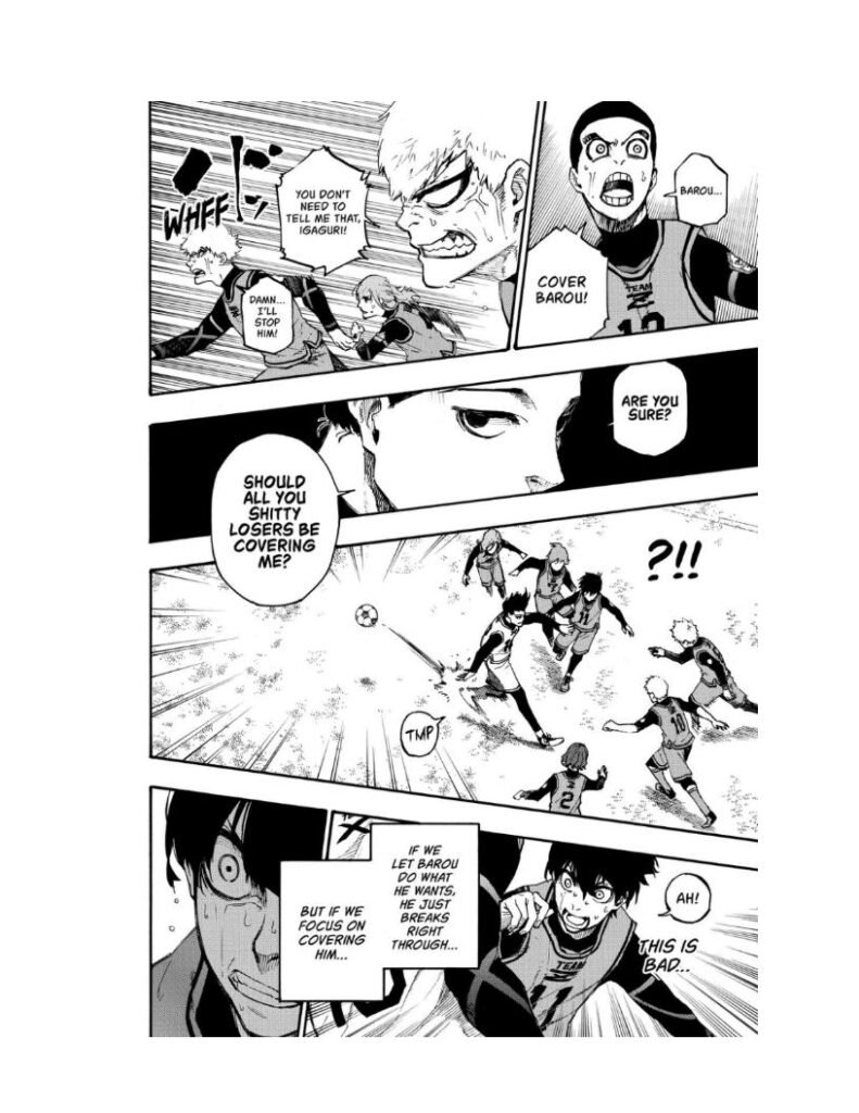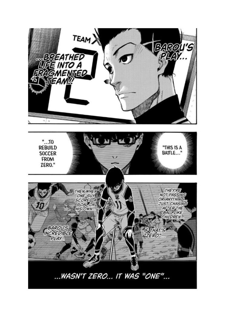 Isagi begins replaying the match in his head, realizing how Barou’s unshakable confidence led him to victory. The difference wasn’t skill — it was belief.